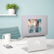A dreamlike surreal portrait: a floating mirror panel rises from a calm sea as a splash crown and ripples frame a serene woman’s face. Liquid surfaces mirror the pastel cloud sky, creating luminous reflections and a soft cyan–peach palette. Printed on aluminum via dye-sublimation for vivid color, crisp details and deep blacks. Choose gloss for high-impact shine or matte for a refined, glare-free look. Ships ready to hang with a floating mount; UV/moisture-resistant—ideal for bedrooms, living rooms, studios and modern offices.