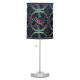 The lamp looks exactly like the picture, bright and colorful. The lamp shade is plastic not what I expected, however I love it! The printing is clear and the name can easily be read.