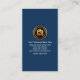 In the dark blue placard column lies your prestigious name with your job title inverted next to a gold numbers logo. Just below this are the contact details.