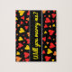 This fun puzzle design features a pattern consisting of heart shapes of various sizes, and colored colors like red, orange and yellow. The heart shapes could be said to look like they are floating. It also features the marriage proposal question "Will you marry me?" on the front in yellow script-like text. A puzzle like this could be a fun way to propose marriage to somebody special.