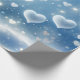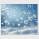 Floating hearts dance amidst a serene, snow-like landscape illuminated by a soft, ethereal glow