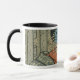 The pictured geisha is hiding behind a screen from a man hunting with an upturned samuri blade. The full ukiyo-e theatre print will be released shortly as a fine art print. The original print dates from the 1800s and probably comes from Edo. This mug is part of a series.