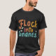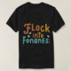 The t-shirt design features the heartwarming phrase "Flock into Fondness" in a delightful multicolor palette. Each word could be a different color, creating a cheerful and inviting design. This shirt is perfect for bird lovers, animal enthusiasts, or anyone who cherishes friendship and community.