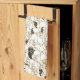 a huge flock of very happy black and white cartoon sheep are covering this kitchen towel.