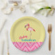 Paper plates with a graphic illustration of a pink flamingo. Text says: Flocking Fabulous.