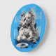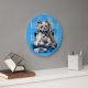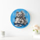 floofy dog eating at the table large clock