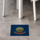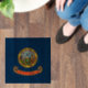This floor decal proudly displays the flag of Idaho, characterized by its distinctive blue field with the state seal prominently featured. The seal includes symbols such as a miner and a woman, representing equality and justice, set against a backdrop of mountains and forests.