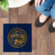 Designed to celebrate the spirit of the Cornhusker State, this floor decal prominently displays Nebraska's official flag. The design features a blue field with the state seal in the center, showcasing symbols of Nebraska's agriculture, industry, and history, such as a steamboat on the Missouri River, a train, and the state capitol building. This emblem embodies Nebraska's spirit of progress and heritage, making it a perfect addition to any room or office.