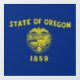 Crafted with meticulous attention to detail, this decal celebrates Oregon's natural beauty and heritage through its distinctive flag design. The flag features a field of navy blue with a gold shield depicting a setting sun, mountains, forests, and a blue river with a beaver, symbolizing the state's diverse landscapes and historical significance.