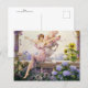 A fine art postcard with the painting, Flora (1913), by the French artist Louise Abbéma (1853-1927). A portrait depicting Flora, who in Roman mythology was the goddess of spring and flowers. She is surrounded by purple hydrangeas, roses and sunflowers.