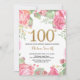 Floral 100th Birthday Invitation Gold Glitter
