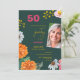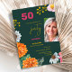 Celebrate a milestone in style with this elegant 50th birthday party invitation featuring a modern floral design, bold colors and a personalized photo. The rich green background combined with vibrant flowers creates a sophisticated yet cheerful look, perfect for a stylish birthday celebration.