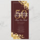 Floral 50th Birthday Program Gold & Burgundy Menu