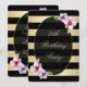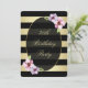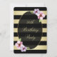 Floral 70th | Horizontal Black Gold Stripes Invitation