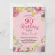 Floral 90th Birthday Invitation for Women Pink