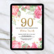 Floral 90th Birthday Invitation Gold Glitter