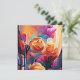 Floral Abstract Art Orange Red Blue Flowers Invitation