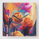 Floral Abstract Art Orange Red Blue Flowers Square Wall Clock