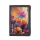 Floral Abstract Art Orange Red Blue Flowers Trifold Wallet