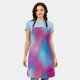 Great color and even though I ordered the kid size, it covers well enough to use during the holidays. I am not a big woman and prefer a shorter apron. I stand 5"6" and the length of the garment goes to mid-thigh. The tie straps fit well at my waist and even though there is no neck strap adjustment, the opening is plenty big enough. I am happy with the size and fit. I am sharing my apron with my 10 year old grandson, too! The color is vibrant and looks good, as shown on the website. The stitching looks strong and reinforced. Photographed is front side and back side of the apron, reinforced straps and coloring. My phone camera may not be the best at showing the details.