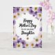 This greeting card centers the message “Happy Mother’s Day TO MY AMAZING Daughter” on a bright white background, letting the words feel like a close, affectionate note ❤️. “Happy Mother’s Day” and “Daughter” appear in flowing black lettering, while “TO MY AMAZING” sits between them in a simpler black style that keeps the layout easy to follow. The text is stacked in the middle with generous spacing, so your eyes move gently from the greeting down to the recipient. Around the edges, a soft border of out-of-focus blossoms in white and pale lavender creates a tender, hug-like frame, with small touches of yellow and deeper purple at the flower centers 🌼. The blurred floral ring adds a quiet, romantic softness, like a bouquet held just out of focus while the message stays front and center. Beneath the word “Daughter,” a small gold crown sits like a sweet symbol of admiration, detailed enough to catch the light without overpowering the text. The crown is positioned directly under the last line, its warm metallic tone standing out against the white space and the misty lavender petals.