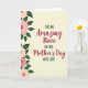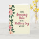 This card features a warm message centered on a glowing cream background, with the main words “Amazing Niece” and “Mother’s Day” in flowing cranberry-red lettering that feels gently romantic ❤️. The supporting lines sit around the main phrase in smaller, simple charcoal text that’s easy to read and keeps the focus on the central greeting. A vertical floral border runs down the left side, like a quiet bouquet offered with affection, framing the message without crowding it. The blossoms are stylized and softly shaded in rose and pale apricot, with layered petals that suggest a tender, caring touch. Deep forest-green leaves weave between the flowers, adding a grounded contrast that makes the warm tones stand out. The layout feels balanced and intimate, as if the words were arranged with extra care for someone cherished 🌼. The left edge shows plump blossoms in rose and apricot alternating with slender green leaves trailing down the card.