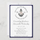 Floral Anchor Nautical Wedding Navy Blue Stripe Invitation