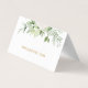 Pretty and chic floral and greenery professional business card features your name in modern gold color script lettering on a white background and includes a place for your QR code.