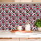 Brighten up your space with this vibrant folk art-inspired design featuring intricate floral motifs and charming strawberries. The bold red, blue, and green tones create a lively and cheerful aesthetic, perfect for backsplashes, accent walls, or adding a touch of whimsical charm to your kitchen or interior décor.