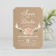 Send a stylish save the date invitation featuring a floral antler graphic. Choose your die-cut style for the corners as well.