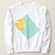 A modern yellow flower and turquoise rectangle graphic art printed 'Floral Aqua Rectangle Graphic Sweatshirt' for women, designed by one owl artist.