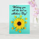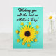 This design shows a large golden-yellow flower filling the lower half of the card, with a dark, detailed center that adds rich texture like a steady heart ❤️. Around it, smaller yellow blooms curve in a gentle arc, as if they’re leaning in toward one another like close friends sharing a quiet moment. The background is a calm turquoise that makes the warm petals stand out without feeling harsh. Near the top, a flowing line of text sits centered in deep black, leaving airy space between the words and the flowers. The lettering is smooth and slightly curved, echoing the rounded shapes of the petals and giving the message a soft, affectionate tone. Bright, even lighting creates faint shadows along the petal edges, adding depth while keeping the scene light and fresh 🌼. A few small blossoms appear to float just above the main flower, their petals tipped with subtle highlights against the turquoise field.