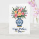 Designed with a bright floral illustration that feels like a caring gesture between close friends ❤️. At the center sits a curvy white ceramic vase decorated with detailed sapphire-blue swirls and plant motifs, with thin golden bands at the neck and base. A full bouquet rises from it, featuring large roses in soft coral pink and warm buttery yellow, mixed with small buds and airy lavender-toned sprigs. Deep green leaves spread outward, giving the arrangement a gently embracing shape, like arms gathered around someone you love. The background stays plain white, letting the flowers stand out under soft light that highlights the petal edges and leaf texture. Near the bottom, a flowing message appears in deep indigo lettering, with small olive-green leafy flourishes on either side 🌼. The indigo text sits centered beneath the vase, while the tiny leaf details curl outward in thin strokes against the white space.