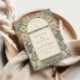 A luxurious save the date card featuring intricate Art Nouveau floral frames in soft gold against a deep green backdrop. Embellished with delicate vines, blossoms, and vintage detailing, this card sets the tone for a timeless and romantic wedding celebration with classic style and sophistication.