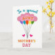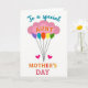 This greeting card features a bright, celebratory layout on a white background, with a gentle, affectionate tone that feels like a warm hug ❤️. Near the top, the words “To a special” appear in a flowing teal style, set slightly above a cluster of soft pink cloud-like shapes. Centered inside those pink shapes, “AUNT” stands out in large orange letters, giving the message a friendly, close-to-the-heart focus. From the bottom of the pink cluster, five balloons rise upward in purple, teal, orange, yellow, and green, each tied with thin black strings that meet below as if held together with care. Beneath the balloons, two small fuchsia hearts sit close side by side, adding a sweet, companionable touch 🌼. Along the lower part of the design, “MOTHER’S DAY” is written in big uppercase letters with a warm gradient that shifts from orange into deep pink. The balloons float above the centered text, and the thin black strings create neat lines against the white space.