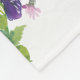 A sweet and girly baby blanket featuring a botanical wreath with blue, purple, violet and pink flowers.