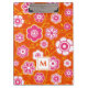 This boldly colorful flower patterned clipboard is ready for your monogram. Repeating 60's style folk flower print is created in a bright palette of hot pink, white and orange red, with your monogram sharply accented, ready for you to edit with the click of a mouse. See other items in this coordinating collection at Monograms and Monikers on Zazzle.