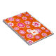 This boldly colorful flower patterned notebook is ready for your monogram. Repeating 60's style folk flower print is created in a bright palette of hot pink, white and orange red, with your monogram sharply accented, ready for you to edit with the click of a mouse.