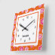 This boldly colorful flower power pattern comes on a square wall clock and is ready for your personal name. Repeating 60's style folk flower print is created in a bright palette of hot pink, white and orange red with a white background accent, ready for you to edit the text with the click of a mouse. Nice gift for a teen or tween's room.