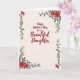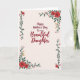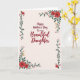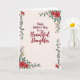 This card features a soft cream-to-pink background that sets a gentle, affectionate tone, like a quiet hug between family members ❤️. Centered on the front, the main line reads “Happy Mother’s Day to my Beautiful Daughter,” with most of the wording in a deep crimson and “Beautiful Daughter” in a flowing, cursive-style lettering that looks extra tender. The text sits comfortably in the middle with generous spacing around it, making the message easy to notice at first glance. A decorative border of green vines wraps around the edges, as if nature is leaning in close to frame the words. In the corners, flat red flowers with dark star-shaped centers add a romantic, storybook-like touch, while smaller pink and yellow blossoms soften the look 🌼. Tiny red berry dots are sprinkled among the leaves, giving the frame a sweet, sprinkled detail without feeling busy. The overall layout feels balanced and calm, with the deep red lettering standing out against the airy pastel backdrop. The border shows curling green stems, simple leaf shapes, bright corner flowers, and scattered mini blooms encircling the centered crimson text.