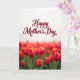 This greeting card features a wide field of red flowers with orange-gold edges filling the lower half, with a few blooms in the front shown sharply while the rest fade softly into the distance. Slender green stems rise from a muted green base, and the gentle, diffused light makes the petals look tender, like they’re leaning in close the way good friends do ❤️. The background stays softly blurred, creating a cozy, romantic hush around the brighter foreground blossoms. Across the top, the scene opens into a large white space that feels airy and calm, like a pause before a hug. A short message sits centered in that white area, written in flowing crimson lettering that matches the flowers below 🌼. The contrast between the bright blooms and the pale upper space keeps the design easy to read while still feeling intimate. In the closest cluster, the red petals show fine fringes of warm gold along their edges against the soft white backdrop.