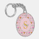 Floral Bee & Flowers Pattern Pink Monogram Keychain