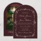 Floral Beige Burgundy Old Money Arched Wedding Invitation