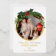 Floral Berry Wreath Christmas Lights Photo Gold Foil Holiday Card