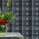 Exquisite ceramic tile, meticulously crafted to showcase a rich design that intertwines floral elements with enchanting folk art motifs. The intricate patterns, masterfully arranged in a harmonious blend of black, blue, and white hues, create a captivating visual tapestry that adds an aura of elegance to any space. Enhance your surroundings with this stunning ceramic tile, where the fusion of artistic expression and timeless craftsmanship brings a touch of sophistication to your home or project.