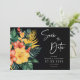 Elevate your wedding announcement with our striking and unique Floral Black Botanical Tropical Wedding Save the Date card. Set against a luxurious black background, this eye-catching design features elegant floral watercolor elements, including vibrant hibiscus and graceful palm leaves, reminiscent of an exotic beach getaway. The combination of colorful flowers and refined and modern typography adds a touch of sophistication to your announcement. Perfect for a destination wedding, this save the date captures the essence of a tropical paradise, setting the tone for a celebration filled with joy and love.