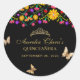 Floral Black Gold Tiara Butterfly Mis Quinceañera Classic Round Sticker
