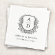 Floral Black White Crest Wedding Monogram Napkins
