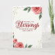 Designed with soft floral corners and a calm, creamy white background, this card centers on a Mother’s Day message that feels tender and caring ❤️. The main line reads “Wishing You Blessings On Mother’s Day And Always,” with the word “Blessings” in flowing crimson lettering that draws the eye like a gentle embrace. The surrounding lines are set in a simple, neat style in a darker tone, placed above and below to keep the layout balanced. Blushing pink roses with deep green leaves sit in the corners, as if they’re leaning inward toward the words like a quiet show of affection 🌼. The petals are shaded softly, giving the flowers a romantic, close-up feel without crowding the text. Along the borders, small irregular dots in muted coral and pale olive add a light, confetti-like texture that keeps the edges lively. The crimson word sits prominently at center, framed by roses and scattered dots around the outer margins.