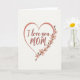 This card features a large heart outline in a soft rose tone centered on a creamy off-white background, setting a gentle, affectionate mood ❤️. Inside the heart, a short message appears in a flowing cursive-style font, placed slightly above center and colored to match the rose outline. The open space around the heart keeps the layout airy, like a quiet pause meant for someone you care about. Along the right curve of the heart, a small trail of blossoms follows the line, as if the flowers are leaning in close. The petals are blush pink with a hint of peach, and the stems are a light brown that softly grounds the design 🌼. The overall look suggests closeness and care through the tender pairing of the heart shape and the delicate florals. A gentle cascade of three to five small flowers hugs the heart’s right edge, with thin stems curling upward.